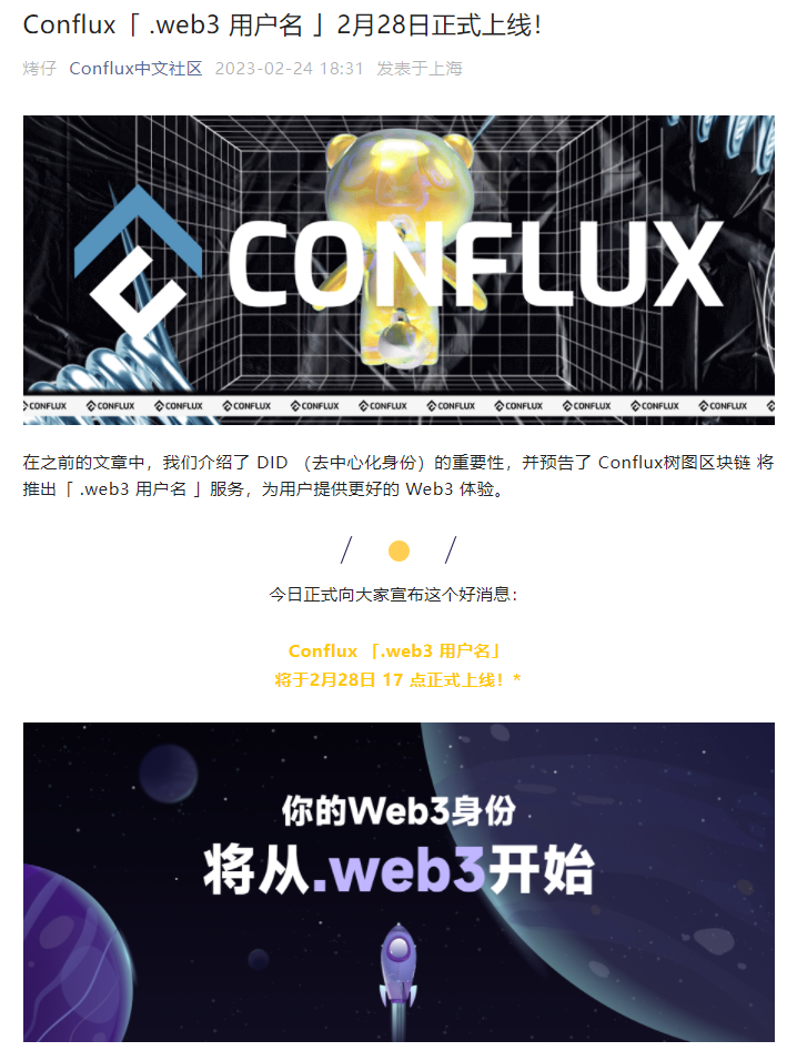Conflux目前重新指定相关信息,提醒风险:关于 Conflux 基金会暂时关闭 Multichain 的跨链路径并建议用户采用其他跨链基础设施的通知 :https://forum.conflux.fun/t/conflux-multichain/18725;6.【海外动态】@Conflux Network 与 @dypius 建立合作伙伴关系,这是一个强大的去中心化生态系统;1.【网络状态】当