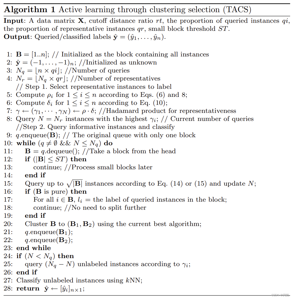 算法伪代码是论文的核心之一.需要说明输入、输出;方法 (函数) 名可写可不写, 如果被别的方法调用就必须写;需要写出主要步骤的注释;长度控制在 15-30 行;可使用数学式子或对已有数学式子的引用;不重要的步骤可以省略;一般需要进行时间、空间复杂度分析, 并写出配套的 property 以及相应的表格, 以使其更标准.例子:...