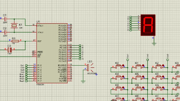 本设计使用AT89C51单片机控制4×4矩阵键盘,通过P1口连接键盘行列线,P2口连接共阴极七段数码管显示按键值,P3.7控制SOUNDER模拟按键音。系统能够识别16个按键输入并在数码管上显示对应的键值(0-F)。此设计实现了矩阵键盘的基本功能,包括按键检测、显示和声音反馈,适合作为单片机入门学习项目。先将所有列线(P1.0-P1.3)置低电平,行线(P1.4-P1.7)作为输入。确定有按键后,