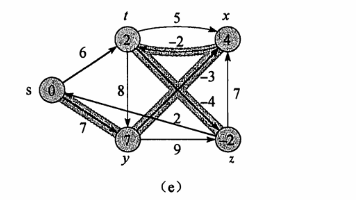 图中可能有负权边,也可能有负权环,需要通过求最短路算法判断图中是否存在负权环,需要使用Bellman-Ford算法,或其优化算法,如队列优化的Bellman-Ford算法,即SPFA算法。数组oldDis记录上一轮源点到顶点i的最短路径长度,数组dis记录这一轮计算后源点到顶点i的最短路径长度。因此将最短路径长度发生更新的顶点入队,每次出队一个顶点u,对其邻接点v进行松弛操作。如果这一轮没有进行松
