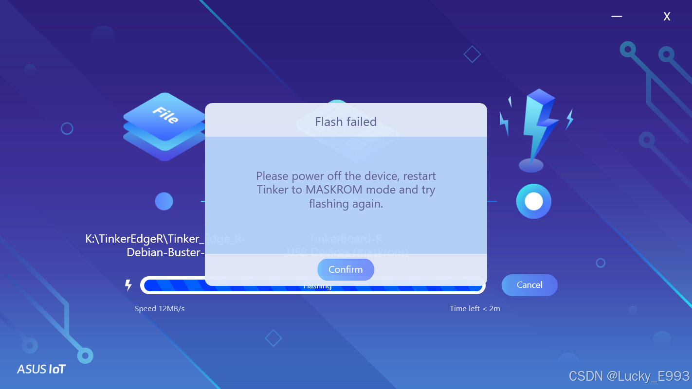解决ASUS IoT Tinker Edge R烧录debian 10系统时频繁提示未进入MASKROM模式无法烧录系统的问题。