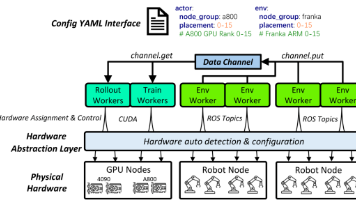 RLinf v0.2是一款面向真机路线的强化学习框架,支持大规模分布式真机强化学习。其特色包括将机器人视为与GPU同级的资源、支持全异构软硬件集群配置、支持全异步off-policy算法等。用户只需编写YAML文件即可完成系统配置,实验显示该框架可在1.5小时内实现任务收敛,大幅降低AI机器人训练门槛。