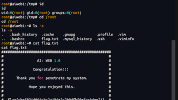 AI.Web1 是一台基于 Ubuntu 18.04 搭建的入门级 Web 渗透测试靶机,部署了 Apache+PHP 环境,开放多个敏感目录与信息泄露点,适合新手练习完整渗透流程。靶机涵盖信息收集、SQL 注入、os-shell 利用、一句话木马上传、反弹 Shell、SUID 提权等经典考点,可完整复现从打点到提权的全链路攻击思路。