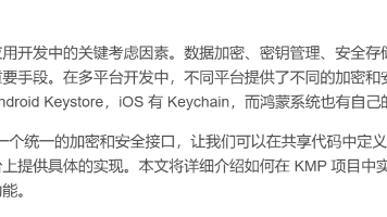 本文介绍了在Kotlin多平台(KMP)项目中实现跨平台加密和安全功能的方案。通过定义统一的加密接口(EncryptionService和KeyStore),在共享代码中实现核心安全管理器(SecurityManager),并在各平台(Android/JVM)提供具体实现。Android平台利用Keystore和Cipher实现AES加密,JVM平台使用Java标准加密库。该方案解决了多平台开发中