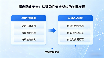 摘要: 面对日益复杂的数字化威胁,传统静态防御体系已难以应对。企业需要构建弹性安全架构,具备快速感知、动态适应和恢复能力。超自动化技术通过四大支柱赋能弹性架构:AI驱动的智能决策、无代码编排与双模联动、人机协同闭环、统一平台与知识沉淀。该技术将安全响应提升至秒级,实现动态防御与能力进化,使安全体系从被动防护转向主动韧性,成为企业核心竞争力的关键支撑。