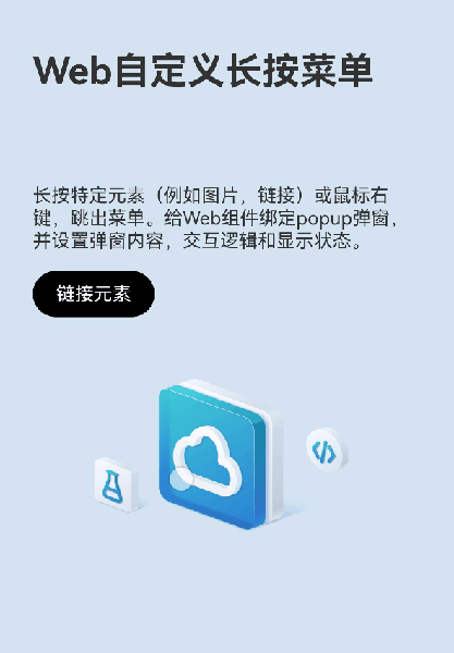 本示例介绍了给Webview页面中可点击元素(超链接/图片)绑定长按/鼠标右击时的自定义菜单的方案。