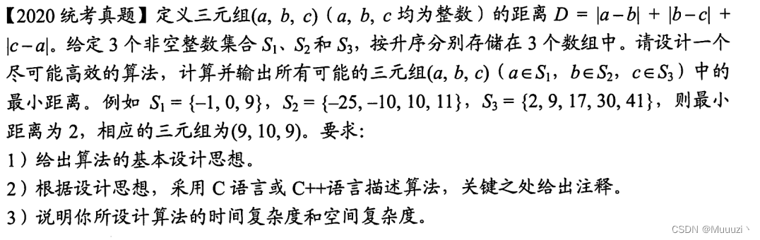 代码思路:三重循环直接拿下。2020 三元组最小距离。
