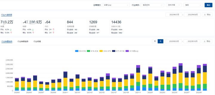 2022年Q3季度咖啡市场在京东平台累计销量约730万件,同比增长53%;累计销售额约4.7亿元,同比增长60%。