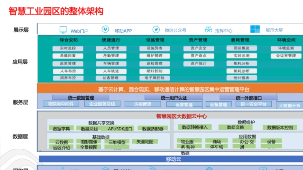 基于云计算、物联网、移动通信计算的智慧园区集中运营管理平台是一个高度集成化、智能化的管理系统,它利用先进的技术手段对园区进行全方位的监控和管理。