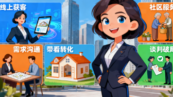 房产经纪高效成交方法论:线上线下双轨获客(短视频精准投放+社区便民服务),采用三层提问法精准挖掘客户需求,带看环节实施"前-中-后"全流程转化策略,谈判阶段运用双端引导法破解价格僵局,并通过分层维护体系激活老客户转介绍。关键点包括:短视频内容突出痛点解决方案、带看时进行场景化介绍、谈判时保持中立立场、老客户维护以非推销互动为主。典型数据:短视频获客成本可控制在32元/人,带看转化率提升至28%,价