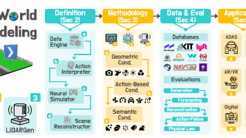 25年9月来自新加坡国立、浙大、地平线机器人公司、慕尼黑工大、香港科大、清华、南京理工、澳门大学和上海AI实验室的论文“3D and 4D World Modeling: A Survey”。世界建模已成为人工智能研究的基石,使智体能够理解、表征和预测其所处的动态环境。尽管先前的研究主要侧重于二维图像和视频数据的生成方法,但却忽略利用原生三维和四维表征(例如RGB-D图像、占用网格和激光雷达点云)