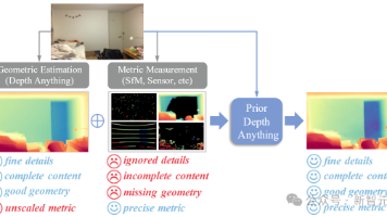浙江大学与港大团队提出PriorDepthAnything框架,将稀疏深度传感器数据与AI深度预测相融合,实现一键补洞、降噪和分辨率提升。该创新方法通过粗到细的流程整合度量信息与几何结构,支持7个真实数据集的零样本迁移,可处理深度补全、超分辨率和修复任务,并能直接优化VGGT等3D模型输出。实验证明该方法在保持像素级精度的同时,显著提升了深度图的细节、边界和度量准确性,为自动驾驶、AR/VR和工业