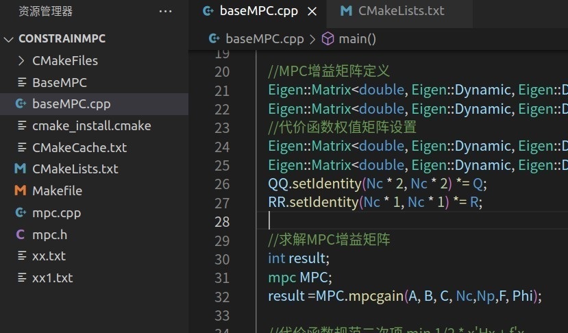 本文介绍了在Linux环境下使用C++实现多种MPC控制策略的方法,包括带约束、带状态观测器以及鲁棒MPC等。通过使用Eigen和OSQP库,结合自编的MPC增益矩阵求解文件,能够有效地实现这些MPC算法。这些实现主要用于学习MPC系列算法思想以及OSQP的实现方式,基于单入多出的二阶系统数值算例,为MPC的学习和研究提供了一个良好的起点。