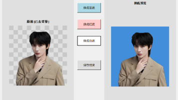 利用图割理论和高斯混合模型(GMM),在仅知道大概区域(矩形框)的情况下,通过颜色统计精准分离前景和背景。闭运算 (MORPH_CLOSE),开运算 (MORPH_OPEN),高斯模糊 (GaussianBlur),轮廓检测 (findContours),Pillow (PIL) - 图像合成与格式转换,图像混合 (alpha_composite):利用 Alpha 通道将抠好的人像图层与纯色背景