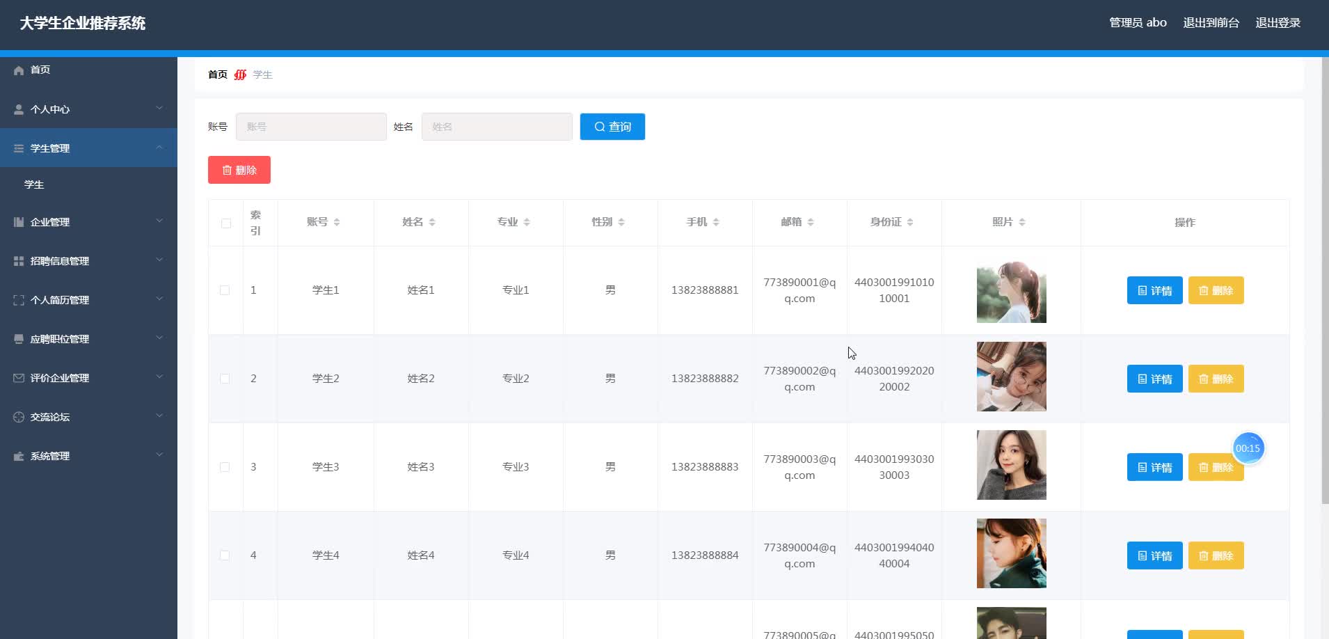 前端:Vue、Vue.js、ElementUI、HTML5、BootStrap、CSS3、JavaScript、jQuery、LayUI后端:SpringBoot+Mybatis数据库:MySQL、SQLServer开发工具:IDEA、Eclipse、Navicat等✌关于毕设项目技术实现问题讲解也可以给我留言咨询!!!在程序设计中,Vue 的组件化开发模式带来了极大的便利。程序设计者可以将页面拆