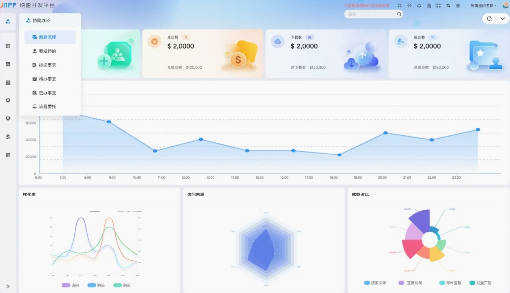 我们相信,随着低代码技术的不断发展和完善,JNPF低代码开发平台将在企业数字化转型中发挥越来越重要的作用,推动企业实现更加快速、灵活的业务创新。新版本对组织管理进行了优化调整。新版本提供了强大的流程设计工具,用户可以利用JNPF提供的预构建模块和组件,轻松搭建复杂的业务流程,让业务流程更高效灵活。在新版本的表单设计中为用户提供了丰富的预构建模块,让用户可以快速设计出专业级的表单,满足各种业务需求。