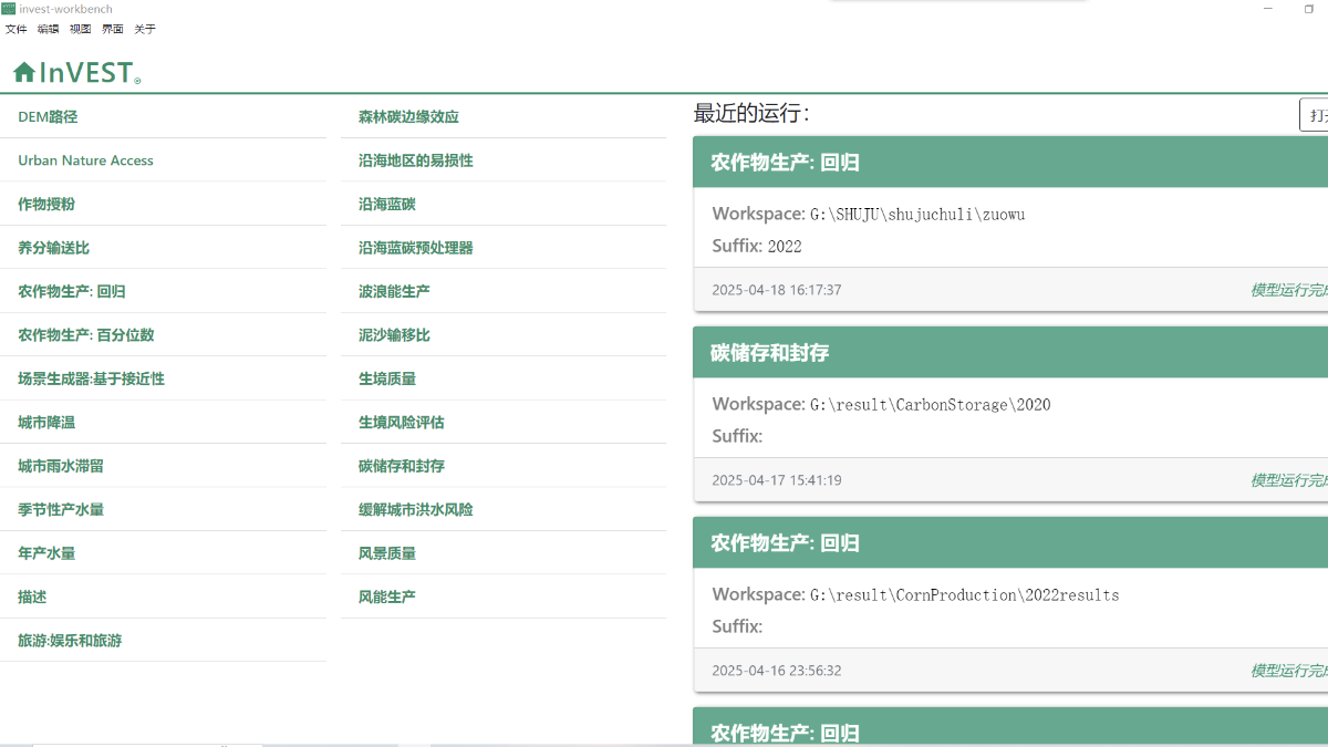 表头参考如上,用英文,土地利用代码和名称要一一对应,地上、地下、土壤和死亡碳的值要查阅相关参考文献获得。其余的数据,我个人没有用到,观看了其他视频也是没有用到的,如果需要的话可以再查一下资料。④重分类,将重采样完的土地利用数据进行分类,一般可分六类,分别为。3.在以上框内输入需要的数据,点击运行,就可获得碳储量结果。2.选择需要用到的模块——碳储量和碳封存,打开如下。————————礼貌的分割线—