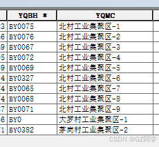 用途三:同时指定两个以上字段内容一致(此时需确保T11要素有同名的两个字段),最后结果只能选出9条要素记录(11减去2例外)1:通过以下两个字段作出说明,打开11个要素的属性表T11(红框两列内容完全一样)和400多个要素T400的属性表。用途一:按照T11的YQBH在T400中选择相同记录的要素(一个例外2编号没有对应记录,只能选出10个)1.1:打开属性相同记录选择工具(具体打开工具的参数说明