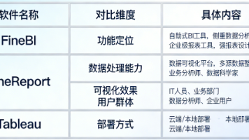 本文针对企业常用的三款数据可视化与报表工具——帆软 **FineReport**、**FineBI** 以及国际主流 **Tableau**,从产品定位、功能特性、上手难度、国产化支持、市场使用率、优缺点等维度进行全面对比。结合 IDC、Gartner 等权威机构数据,分析三款工具在国内与全球的市场占有率,并给出明确的选型建议。文章内容可直接用于 CSDN 发布,帮助企业与开发者快速判断适合自身业
