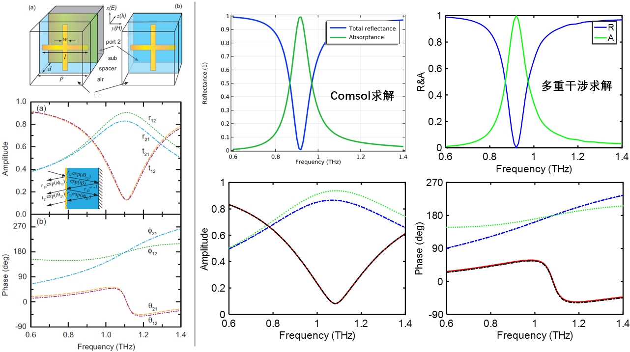 Comsol无偏振转换吸收器多重干涉理论。包含透反射计算,S参数特殊处理,Matlab脚本等。在研究Comsol无偏振转换吸收器时,多重干涉理论是其中的关键要点。多重干涉发生在吸收器的多层结构中,不同层之间的界面会导致光的多次反射和干涉,这对于吸收器的性能有着决定性的影响。
