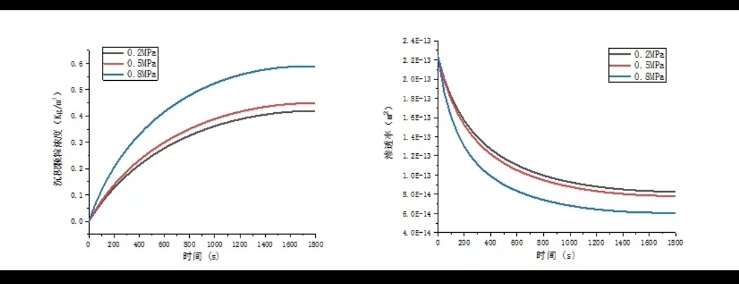 这个研究是基于魏建平的《裂隙煤体注浆浆液扩散规律及变质量渗流模型研究》。在这个研究里,考虑不同注浆压力,进行各种压力下的注浆封堵模拟。结果发现,沉积颗粒浓度会随着注浆压力增大而变大,而渗透率呢,恰好跟它呈负相关。这背后的原理其实挺有意思的,想象一下,压力越大,更多的颗粒被“挤”进了裂隙,慢慢地就会堵住一些通道,导致渗透率下降。