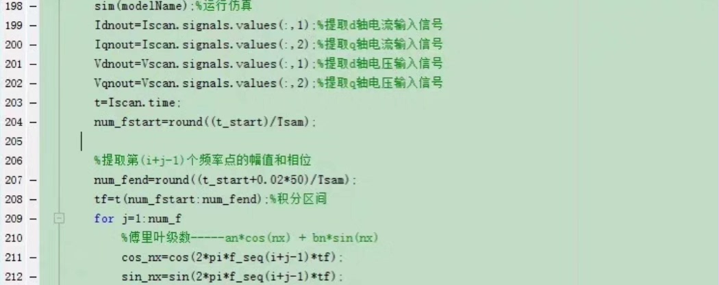 三相负载dq阻抗扫频测量,通过扫频法测量三相RLC负载的dq阻抗,注意不是序阻抗而是dq阻抗仿真组成及功能:1.主电路:由电网三相交流电源(相电压峰值311V,频率50Hz)、正负序三相交流电源和RLC负载组成2.控制模块:由主控制程序和dq变换模块组成3.观测模块:示波器仿真具体功能、特点:1.正负序三相交流电源模块由分别由5个正序电压源和5个负序电压源组成,每次运行仿真的扫频点数可自行设置,最