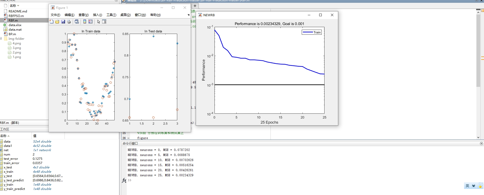 最近在搞时间序列预测的项目,偶然发现把粒子群优化(PSO)和RBF神经网络搭配使用效果贼溜。先剧透个实验结果:相同数据下PSO+RBF的预测误差比传统BP神经网络低了38.6%!最后放个效果对比图(假装有图),蓝色是真实曲线,红色是PSO+RBF预测结果,灰色是传统BP网络的结果。明显看到在波峰波谷处,PSO优化后的预测更贴合真实数据。传统RBF的参数通常用K-means确定中心点,但这次我们用P