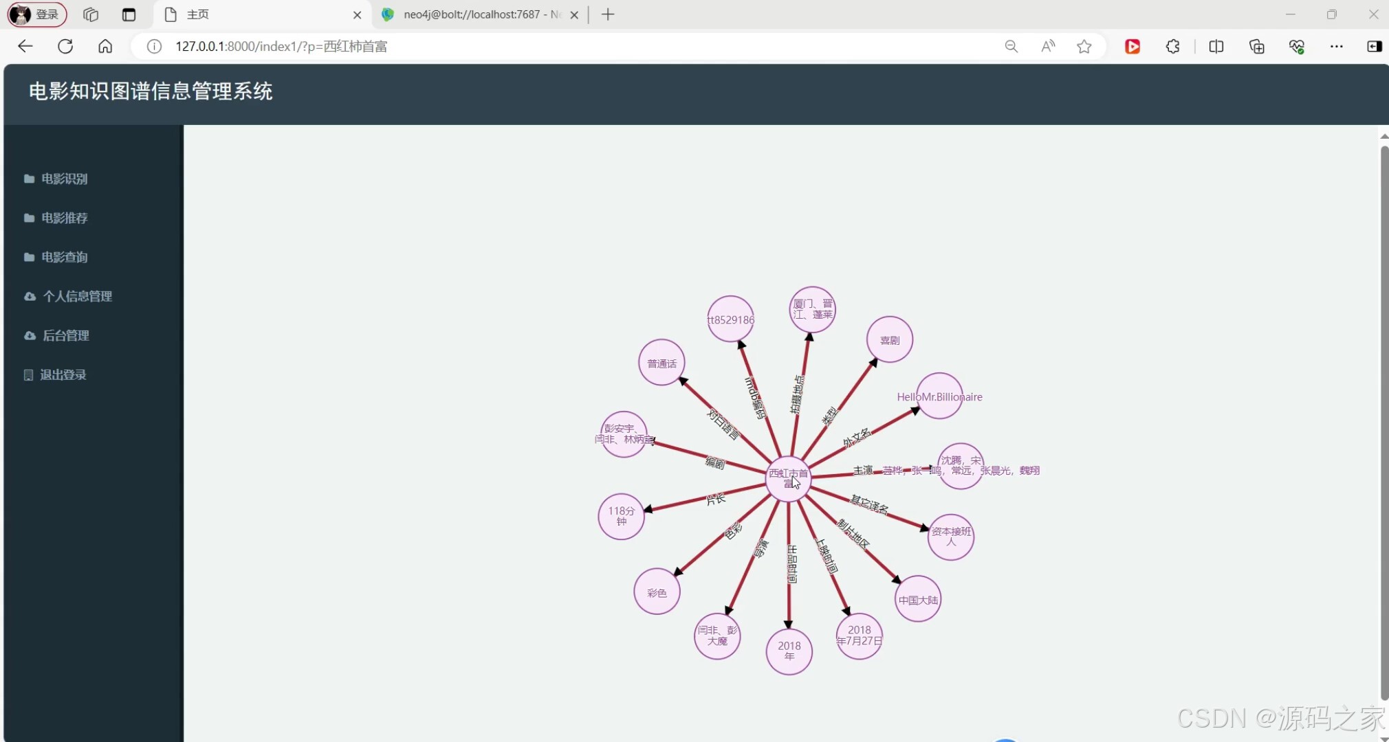 该项目是一款基于Python和Django的电影综合服务平台,融合Neo4j图形数据库和协同过滤算法,实现七大核心功能:1)电影知识图谱查询;2)Neo4j数据库可视化;3)智能问答系统;4)个性化电影推荐;5)Echarts数据可视化;6)个人中心管理;7)后台数据维护。系统通过多技术协同,为用户提供电影信息查询、智能推荐和自然语言问答服务,同时为管理员提供便捷的数据管理工具,实现了电影信息服务