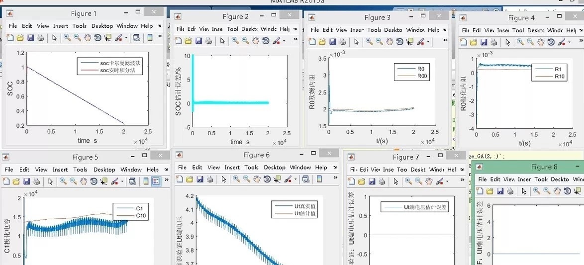 基于一阶RC模型,电池带遗忘因子递推最小二乘法+扩展卡尔曼滤波算法(FFRLS+ EKF),参数与SOC的在线联合估计,matlab程序。
