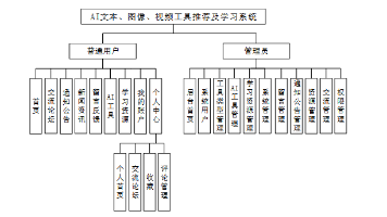 本研究采用Spring Boot作为后端框架,结合Java编程语言和MySQL数据库,构建了一个稳定、高效的系统架构。平台面向两类主要用户:普通用户和管理员。普通用户可以访问首页、交流论坛、通知公告、新闻资讯等板块,获取最新的AI技术和行业发展动态;同时,他们还能利用平台提供的AI工具进行文本、图像、视频的智能处理,并通过学习资源模块提升自己的技术水平。
