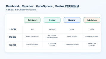 选择云原生平台应优先考虑团队阶段而非功能对比。Rainbond适合K8s新手和私有化部署场景,Rancher面向成熟K8s团队的多集群治理,KubeSphere提供完整平台能力但复杂度较高,Sealos则侧重云上开发和快速部署。评估时应关注上手难度、核心价值与团队实际需求,建议通过真实试点验证平台适用性,重点关注部署效率和团队适配度。不同平台在门槛、场景侧重上存在明显差异,需结合团队现状选择最优方