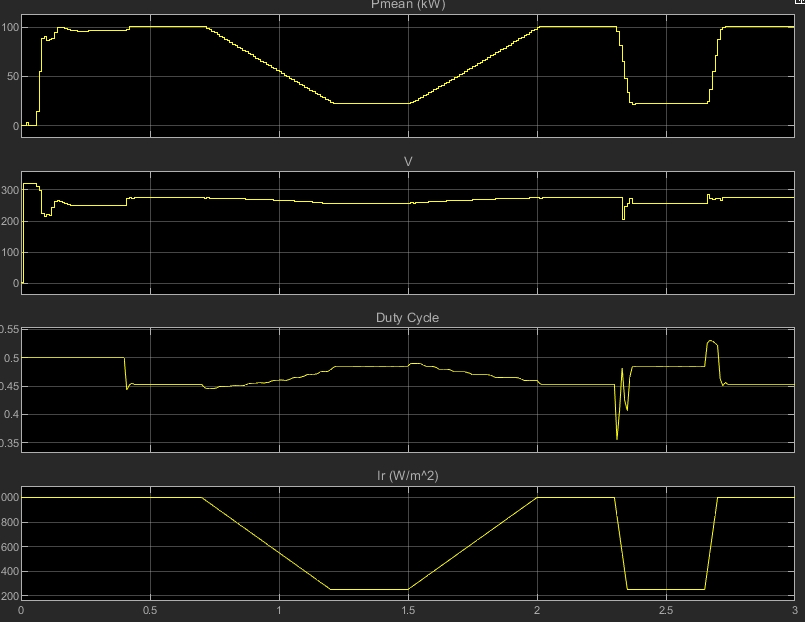 100kW光伏并网发电系统MATLAB仿真模型采用“增量电导+积分调节器”技术的MPPT控制器VSC并网控制最近在研究光伏并网发电系统,搭建了一个 100kW 的 MATLAB 仿真模型,今天就来和大家分享下其中用到的关键技术。