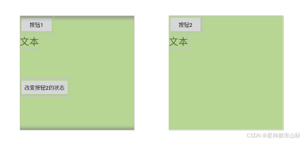 通过点击左边下边按钮控制右边布局拦截事件改变右边按钮2能否收到点击事件。右边最外层是一个自定义线性布局,继承自系统的Linearlayout。点击左侧改变状态按钮后,再次点击按钮2没反应,实现了点击事件的拦截|change2为左边按钮2,linear为右侧线性布局。改变前点击右侧布局按钮能收到点击事件触发点击效果。改变线性布局是否拦截事件。
