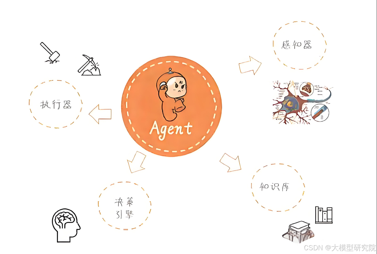(一)智能体的核心定义从经典人工智能理论来看,智能体指的是能通过传感器感知环境,并通过执行器作用于该环境的事物,任何独立的、能够思考并可以与环境交互的实体,都可以抽象为智能体。对于人类智能体,眼睛、耳朵等器官是传感器,手、腿、声道等是执行器;对于机器人智能体,摄像头、红外测距仪是传感器,各类电动机是执行器;对于软件智能体,文件内容、网络数据包、人工输入是传感输入,写入文件、发送网络数据包、显示信息