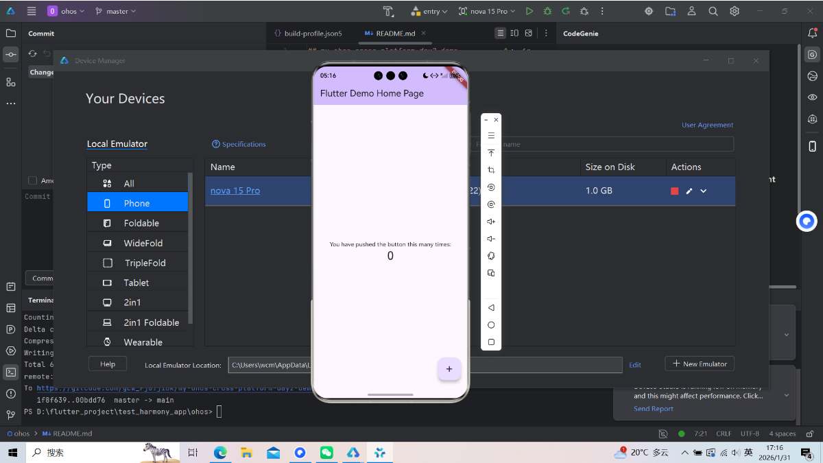 2. 刷新 Gitcode 仓库页面 打开你的仓库页面: https://gitcode.com/gcw_FjG7jiBk/my-ohos-cross-platform-day2-demo 刷新页面后,你应该能看到刚刚推送的代码文件(比如build-profile.json5 、 hvigorfile.ts等)出现在文件列表里。git remote add origin https://gitco