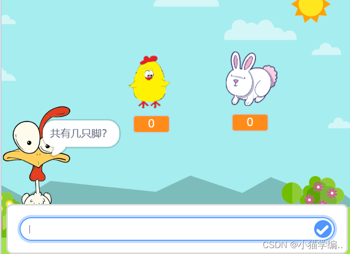 程序操作:输入框填入正确的数字,自动进入下一挑战;如果输入错误,也会有对应提示。作品展示【鸡兔同笼】