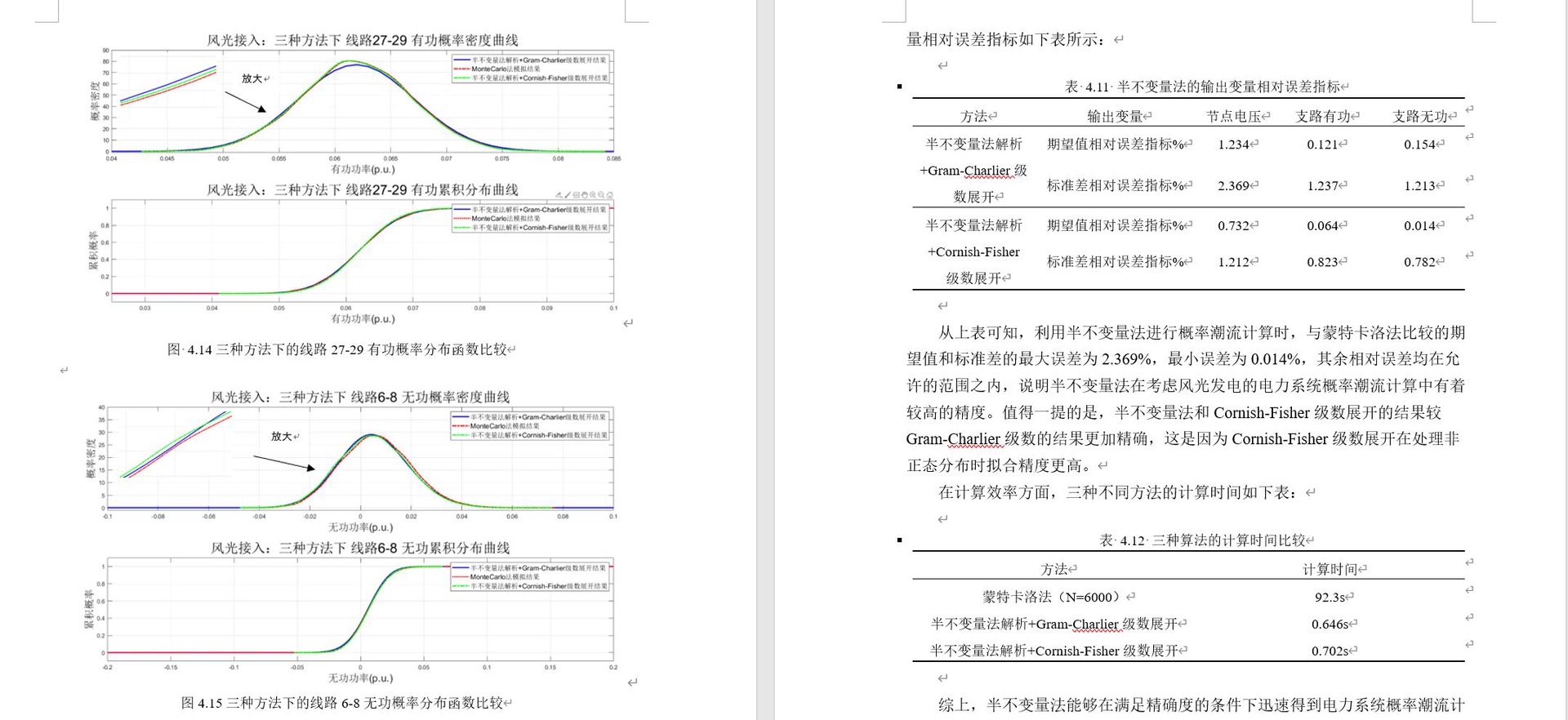 本套代码针对含风光发电的电力系统,考虑负荷波动及风、光出力不确定性,采用蒙特卡洛法与半不变量法(结合Gram-Charlier和Cornish-Fisher级数)实现概率潮流计算。代码基于IEEE 34节点和IEEE 30节点标准测试系统搭建,注释详尽,通过牛顿-拉夫逊法保证潮流计算收敛性,可输出节点电压、支路功率的概率分布及电压越限概率,为电力系统稳定性分析提供数据支撑。