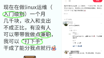以上是某红书平台网友分享的运维想找兼职副业真实案例!这两年,IT行业面临经济周期波动与AI产业结构调整的双重压力,确实有很多运维与网络工程师因企业缩编或技术迭代而暂时失业。很多人都在提运维网工失业后就只能去跑滴滴送外卖了,但我想分享的是,对于运维人员来说,即便失业以后仍然有很多副业可以尝试。