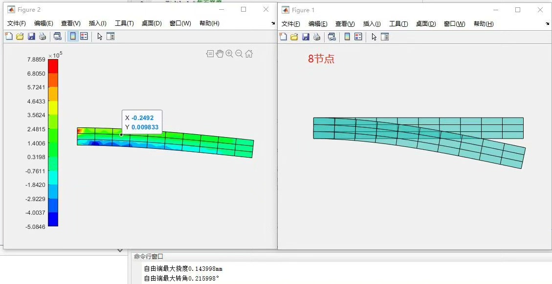今天咱们直接上硬货,拿MATLAB整两个活生生的四节点和八节点四边形单元程序,参数随便改,云图自动出,看完你也能调参玩。基于matlab的悬臂梁四节点/八节点四边形单元有限元编程(平面单元),程序有详细注解,可根据需要更改参数,包括长度、截面宽度和高度、密度、泊松比、均布力、集中力、单元数量等。基于matlab的悬臂梁四节点/八节点四边形单元有限元编程(平面单元),程序有详细注解,可根据需要更改参