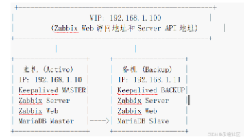 前提条件1.两台服务器:主机 (192.168.1.10) 和 备机 (192.168.1.11)2.共享虚拟IP (VIP):192.168.1.1003.确保两台服务器时间同步 (使用NTP)4.相同的操作系统环境###各组件部署方案参考:超详细 | 如何在OpenEuler系统下安装Zabbix 7.2?部署步骤步骤1:数据库主从复制 (MariaDB/MySQL)在主机上 (192.168