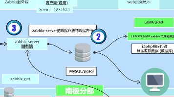 zabbix server通过读取zabbix_server.conf配置文件,启动zabbix server服务器,其日志记录于zabbix_server.log中,zabbix server与zabbix agent交互,通过主动或被动方式,收集被监控设备各种指标数据,收集的数据保存于数据库中;zabbix server还可通过zabbix_get组件主动向zabbix agent索取指标数据