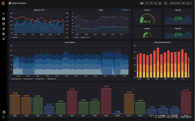 Grafana 是一款强大的开源数据可视化与监控平台,它可以将各种数据源(如 Prometheus、ElasticSearch、MySQL、InfluxDB 等)汇总到统一的可视化界面中。进入任意 Panel → 点击 “Alert → Create Alert Rule”通过仪表盘、折线图、饼图等方式展示系统运行状态,实现数据驱动的监控与决策。例如:选择不同服务、不同环境(dev/prod),图