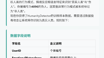 依旧老样子,结论直接往下翻,我这里吐槽一下:我首先看到题目,我第一反应就是交给“豆包”,说实话,豆包说的结果我和满意,就是将所有数据都向人类的数据靠拢。然后我又想了个歪门邪道,我什么都不改,我就改个humanity这一个参数,结果还是报错,说什么什么,反正意思就是检测到你更改参数了,答案错误。然后偶然间,我随便改了个LanguagePatternAnomaly这个参数,我就随便改了一位,我想试试这