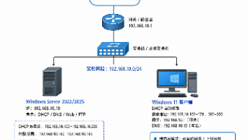 本实验旨在使学生掌握在 Windows Server 2022/2025 上安装与配置 DHCP 服务器的基本方法,理解 DHCP 自动分配 IP 地址、子网掩码、默认网关和 DNS 服务器地址的工作机制。学生将完成服务器静态地址配置、DHCP 角色安装、IPv4 作用域创建、地址池与排除范围设置、作用域选项配置、客户端自动获取地址验证、租约查看、保留地址配置及常见故障排查,为后续局域网管理、服务