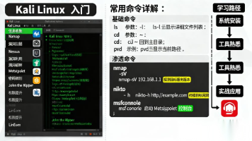 优先掌握:Nmap(信息收集)、Sqlmap(SQL 注入)、Burp Suite(抓包)这 3 个工具,能应对 80% 的入门级渗透场景;避免误区:别盲目学 “所有工具”,先把 1 个工具用熟(如用 1 周时间练会 Sqlmap 的 5 个常用命令),比学 10 个工具却不会用更有用。Kali Linux 的核心是 “工具 + 实战”,零基础不用背所有命令,先练会 “信息收集→漏洞利用→密码破解