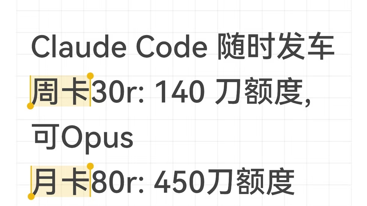 ai聊天 #claude镜像 #人工智能 #Claude #Claudecode #拼车 #cursor #trae #kimi #GLM4。1.周卡30r: 140 刀额度, 可用 Opus模型。3.月卡139r: 840刀额度, 可用Opus 模型。4.月卡249r: 1.8k刀额度, 可用Opus模型。5.月卡 390r: 3k刀额度, 可用Opus模型。Claude Code 随时发车。2
