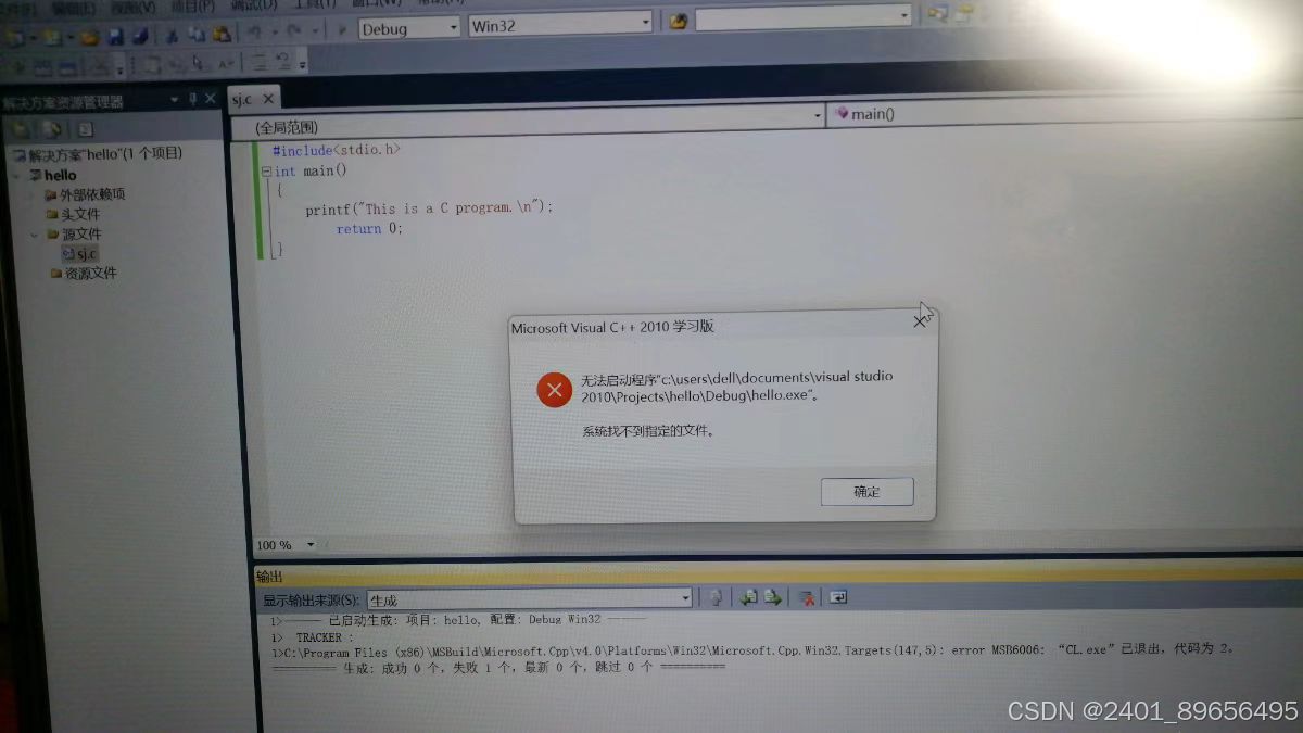 此时确保你之前建立项目的步骤没错,然后直接退出杀毒软件(例如360安全卫士),最后再CTRL+f5,可以发现没有报错。我最近才找到一种适合的方法,大家可以尝试一下。如图,vc++2010报错。
