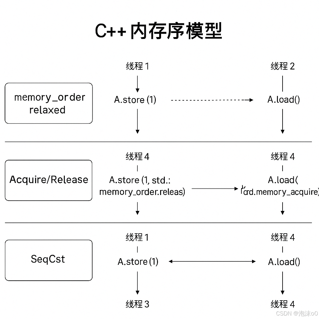 在并发编程中,“**原子性**”保证对同一 `std::atomic` 对象的每次读写要么全部成功,要么全部不做(不会撕裂);“**可见性**”则指一个线程的写入何时对别的线程可见。正如古人所言,“大道至简却难以践行”,原子操作的表面简单掩盖了重排与可见性背后的复杂性。