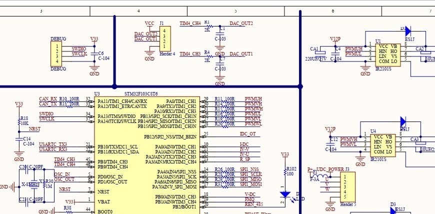 先看硬件架构,核心是用三路PWM配合六步换相。最后给想复现的兄弟提个醒:无感方案对PCB布局敏感,采样电阻到MCU的走线要尽量短。代码仓库里有个motor_debug.c文件,里面集成了在线观测功能,可以通过串口实时调整PID参数,这玩意儿调参时能救命。最近在捣鼓一个全开源的电机驱动项目,用STM32F1实现了有感和无感的BLDC/PMSM驱动。这玩意儿挺有意思,尤其是无感方案在资源紧张的F1上跑