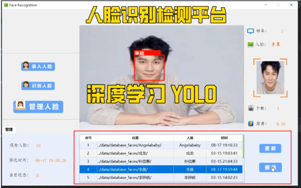 python人脸识别系统+ 深度学习Tensorflow +MySQL数据库(包含文档+源码+部署教程)